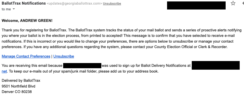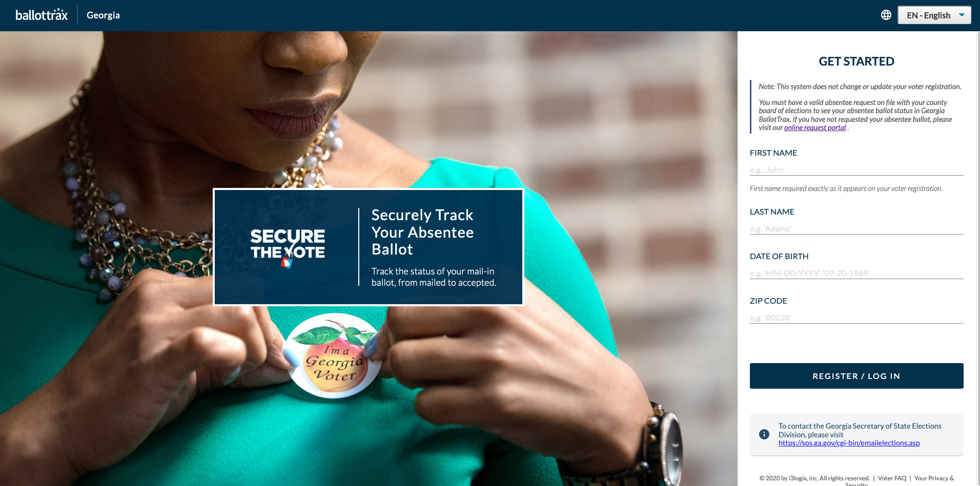 The Georgia Secretary of State’s office has partnered with BallotTrax, an absentee ballot tracking website, to provide voters details on their absentee ballot status. Voters can create an account on the website and receive status updates on their ballot. The URL is https://georgia.ballottrax.net