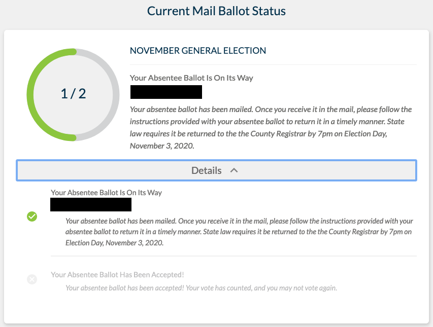 Success! You have now requested your absentee ballot to be mailed to you! But, how do you know that the request is being acted on, and what’s happening with it?