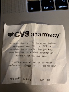 I asked the pharmacy tech if I was understanding this situation correctly. He saw the look on my face and was apologetic while he confirmed I was correct. He then said there was no way for me to opt out here, and that he couldn’t opt me out either. He then printed out a notification and handed it to me, so I could opt out of the promotional offers via telephone: